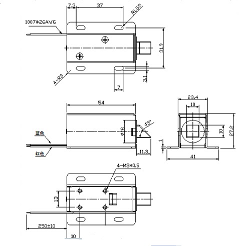 一:門鎖電磁鐵詳細(xì)尺寸圖: